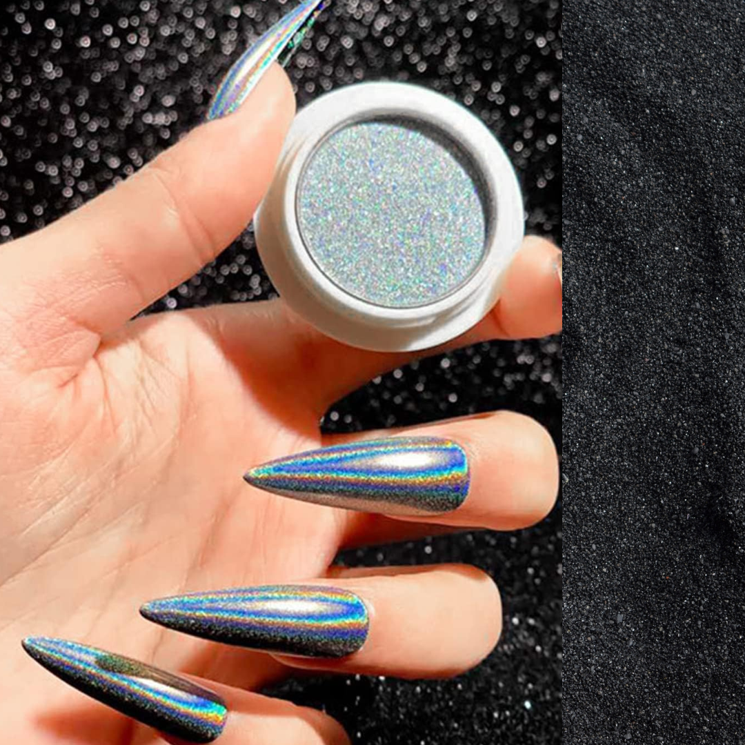 【Vários efeitos】Pó extrafino, o que torna o efeito de revestimento espelhado cromado e o efeito camaleão a laser holográfico muito significativos. Diferentes cores de base produzirão diferentes efeitos holográficos. Com a mudança de perspectiva e a luz produzirá diferentes efeitos visuais, dará às suas unhas um tipo diferente de beleza.