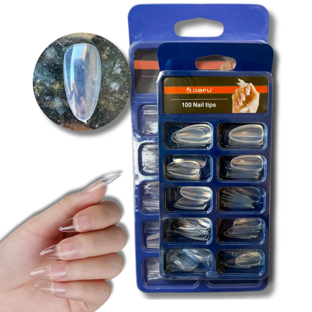 Kit 100 unhas postiças formato amêndoa/stiletto transparentes - para alongamento profissional